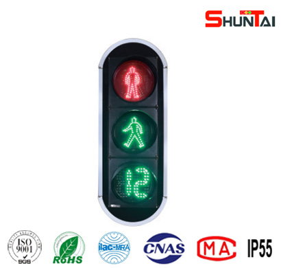 人行信号灯出光面直径有300mm和400mm,光源采用进口超高亮度LED,具有寿命长、功耗低、外观新颖等特点。